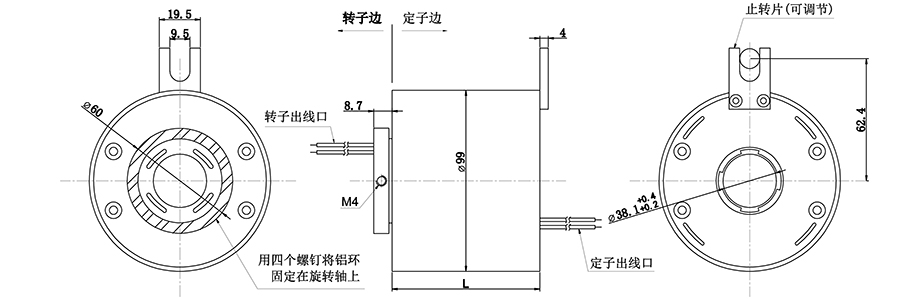 1、不損傷導(dǎo)線360°無限制旋轉(zhuǎn)傳輸數(shù)據(jù)信號(hào);